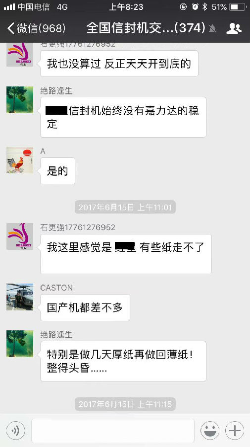 全國信封機(jī)交流群用戶的評(píng)價(jià)