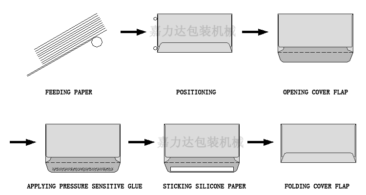 PT-230 melt adhesive spurting and silicone paper sticking machine can be used to spurt melt adhesive and stick silicone paper onto the cover flap, then fold the cover flap to seal the envelope. To make No.7 or below envelopes, spraying hot melt adhesive and pasting silicone paper should be done before molding. While to make NO.9 envelopes, spraying hot melt adhesive and pasting silicone paper should be done after molding.