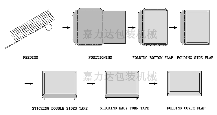 Many of its structures adopt the foreign advanced technology . Its gluing syetem can stop gluing automatically when the machine is short of paper during running;its paper cutting system can adjust the paper lenght freely during running ;also it's provided with a finished product counter and an automatic rotary delivery unit .It's featured by stable performance as well as fast and accurate debugging during mass production .
