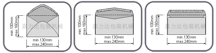 Our automatic envelope glue machine is suitable for processing Chinese style NO. 1-7 envelopes, western style NO.2-7 envelopes and other irregular envelopes.